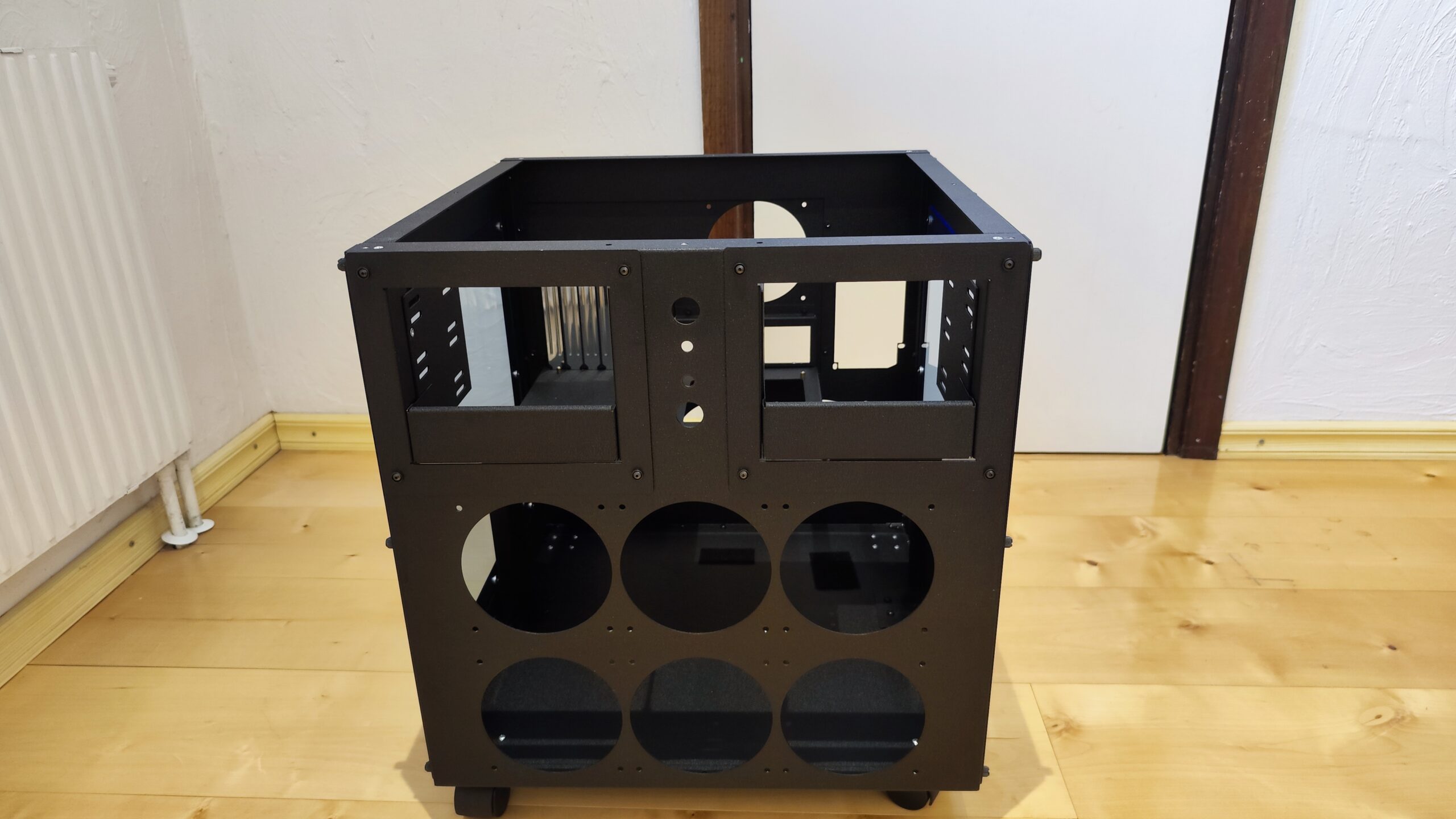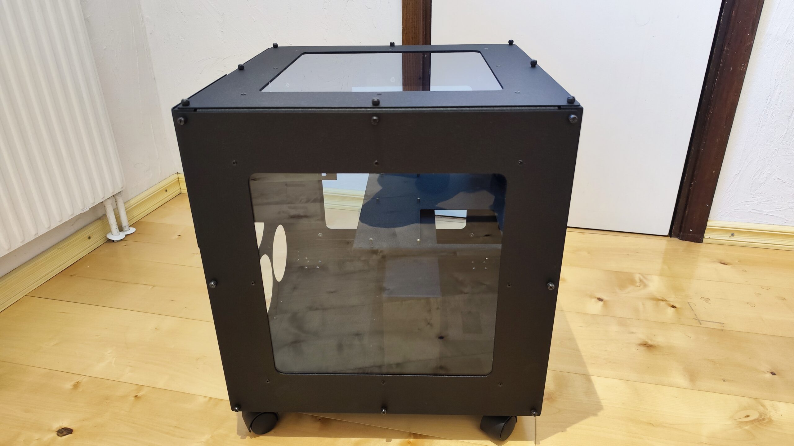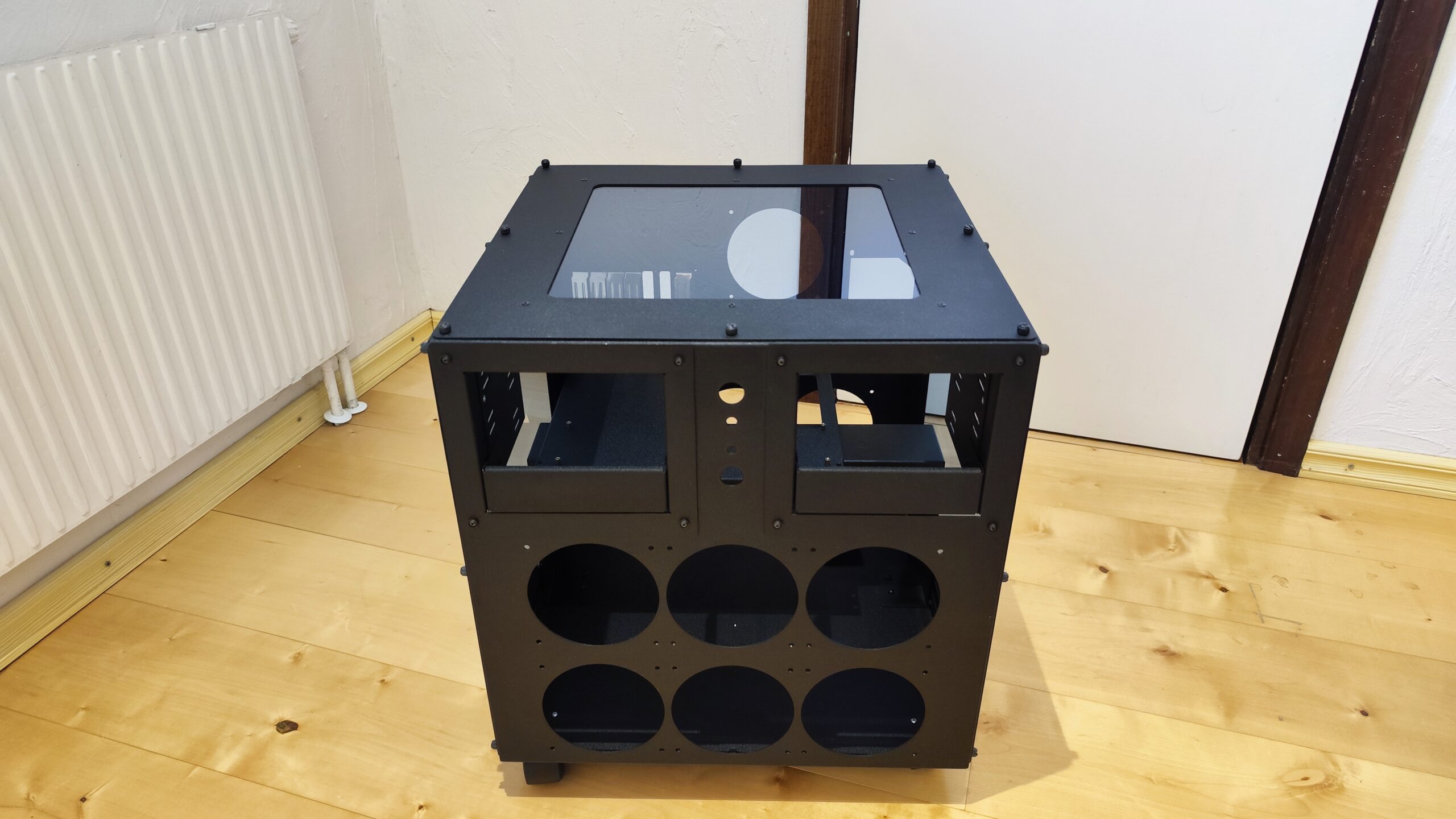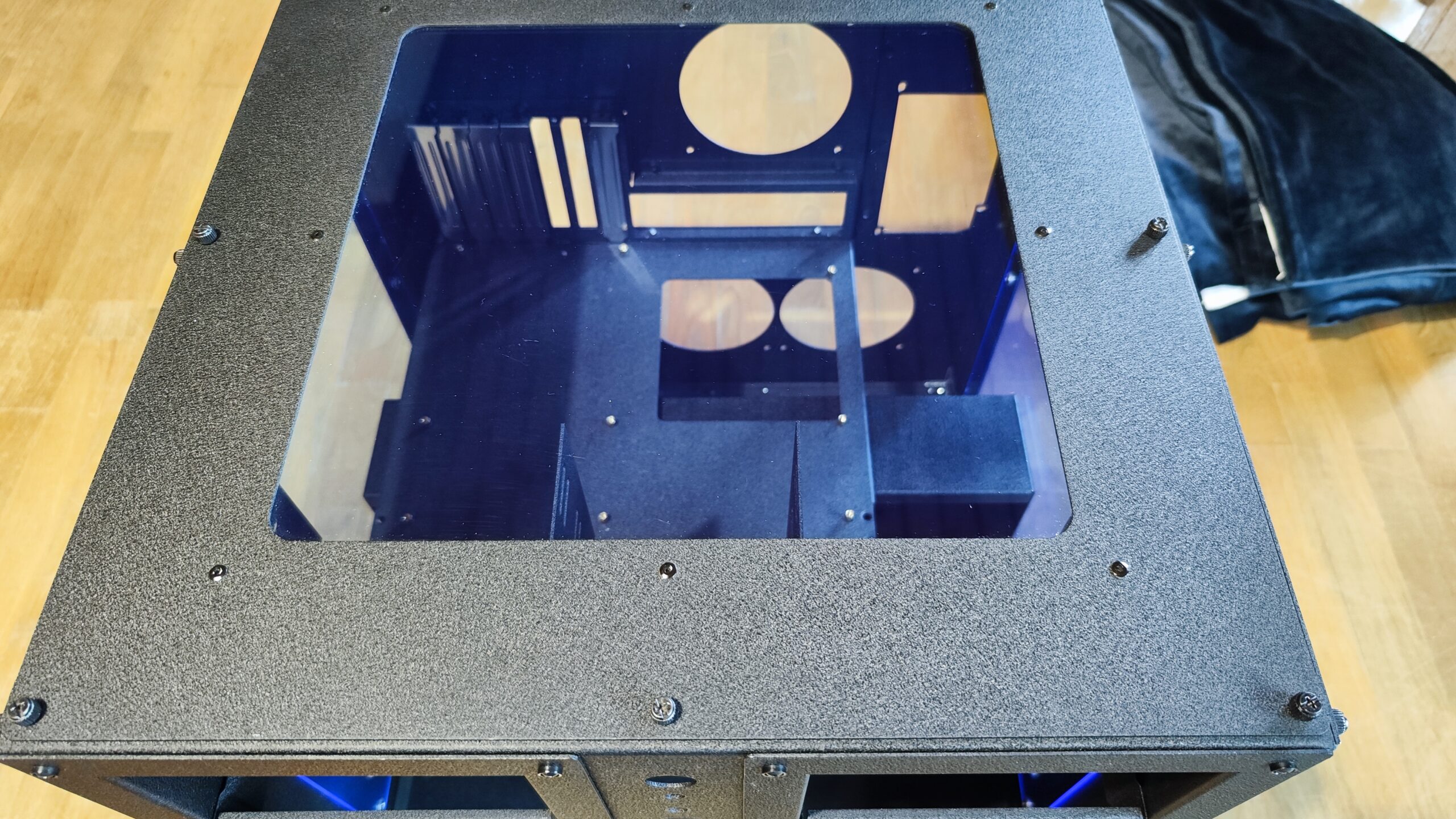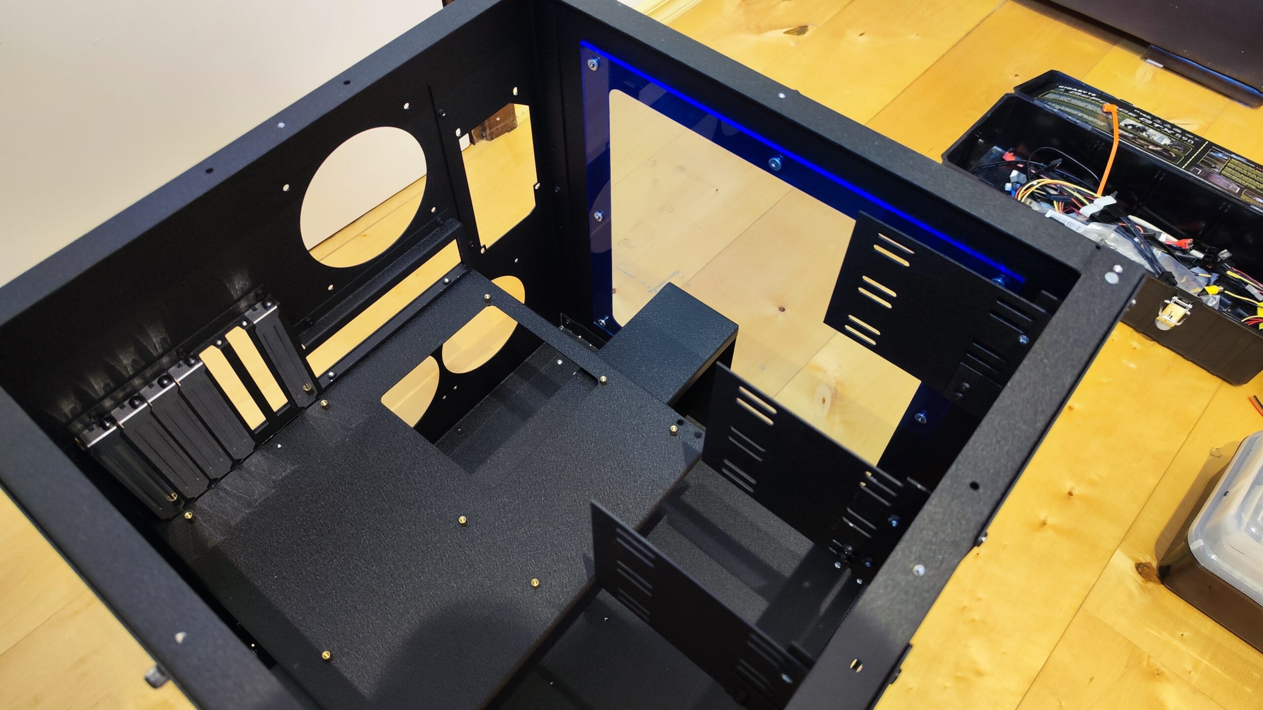 PSU: Jag skulle rekommendera en större PSU-modell för att den ska nå till den stödram som finns i mitten. Den senaste PSU jag använde var en mindre modell – det fungerade absolut, och chassit är superstabilt och klarar lätt att bära upp vikten även om den bara “hänger”. Men det blir helt enkelt snyggare och bättre med en längre PSU.