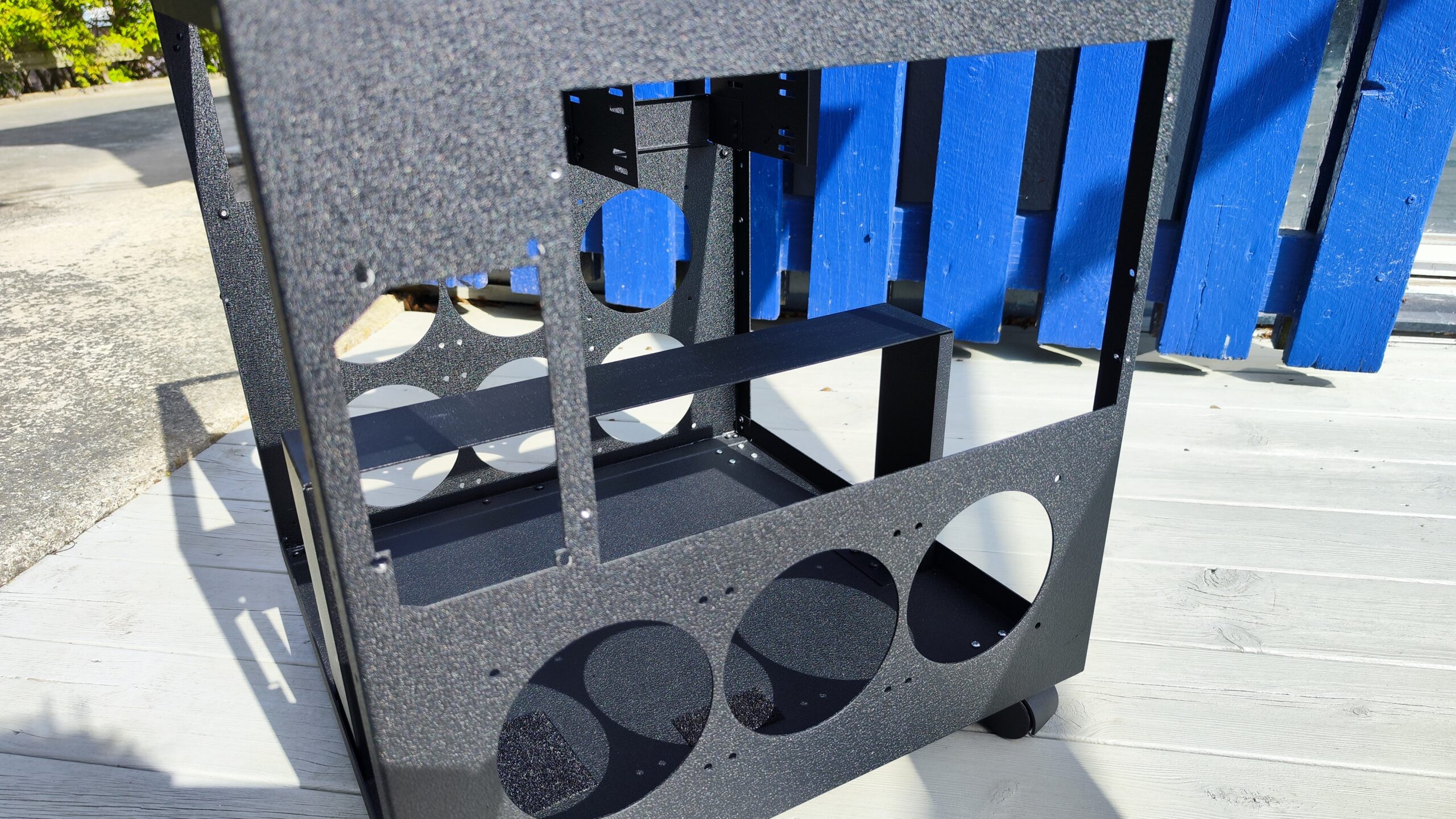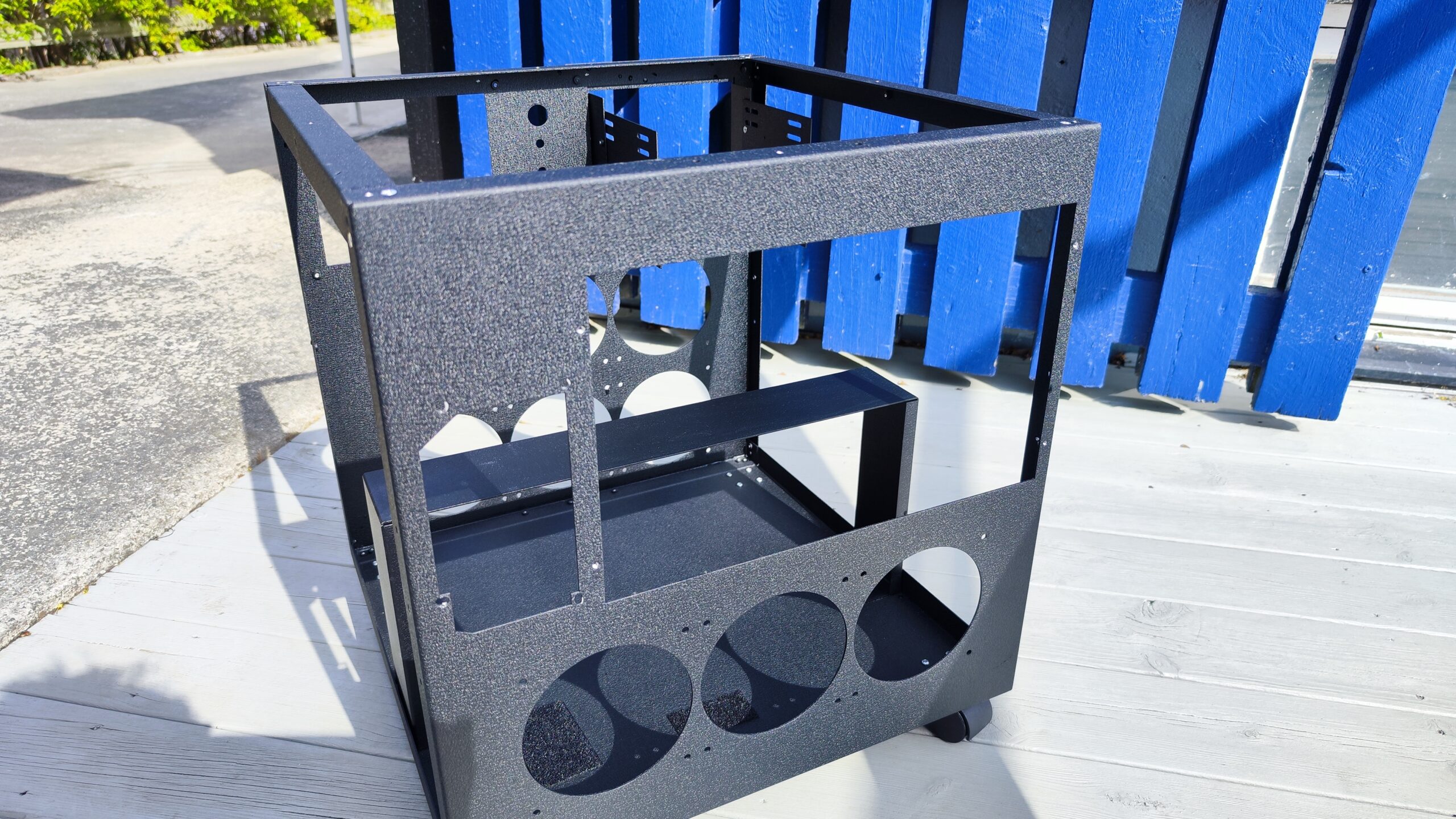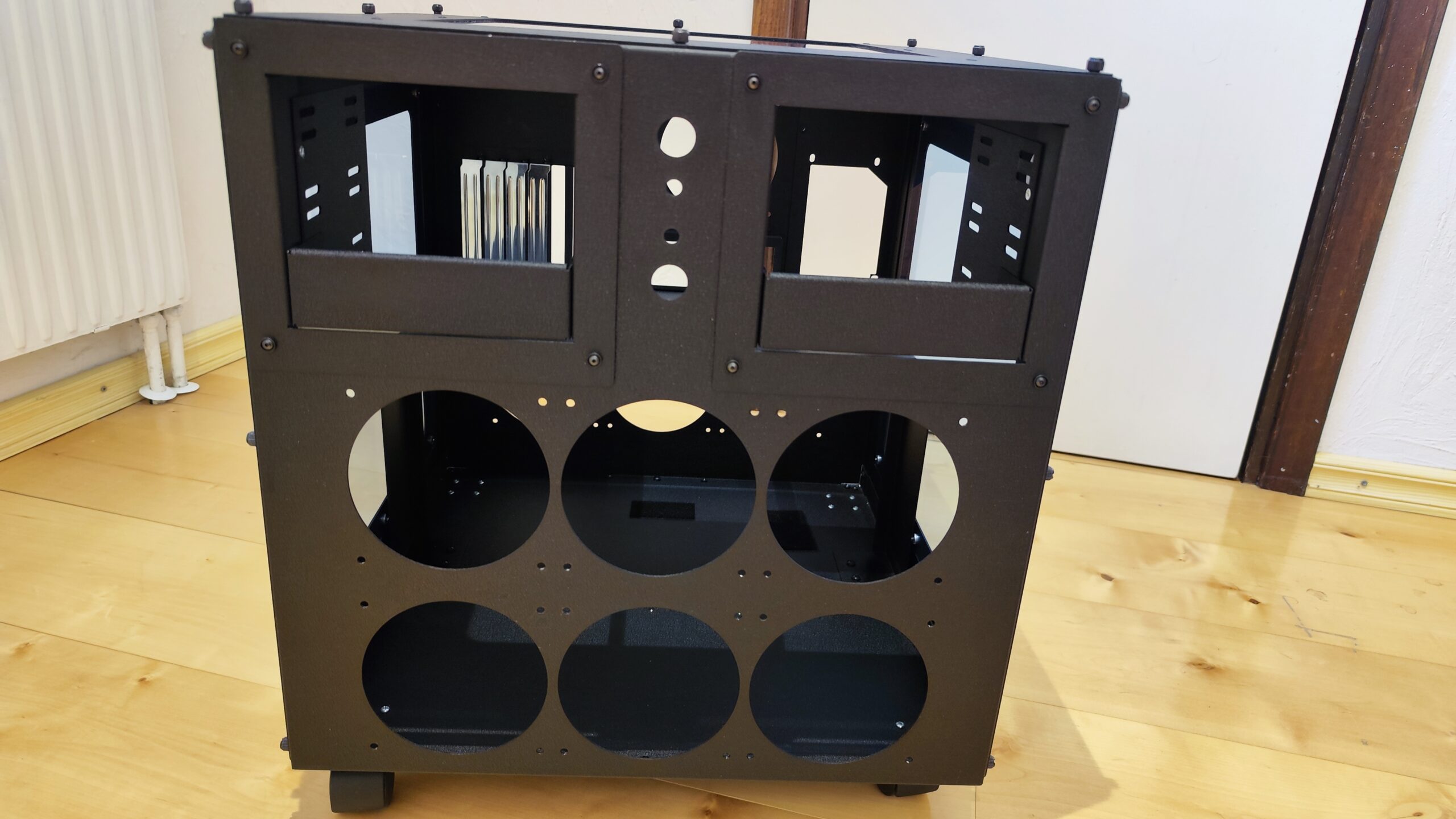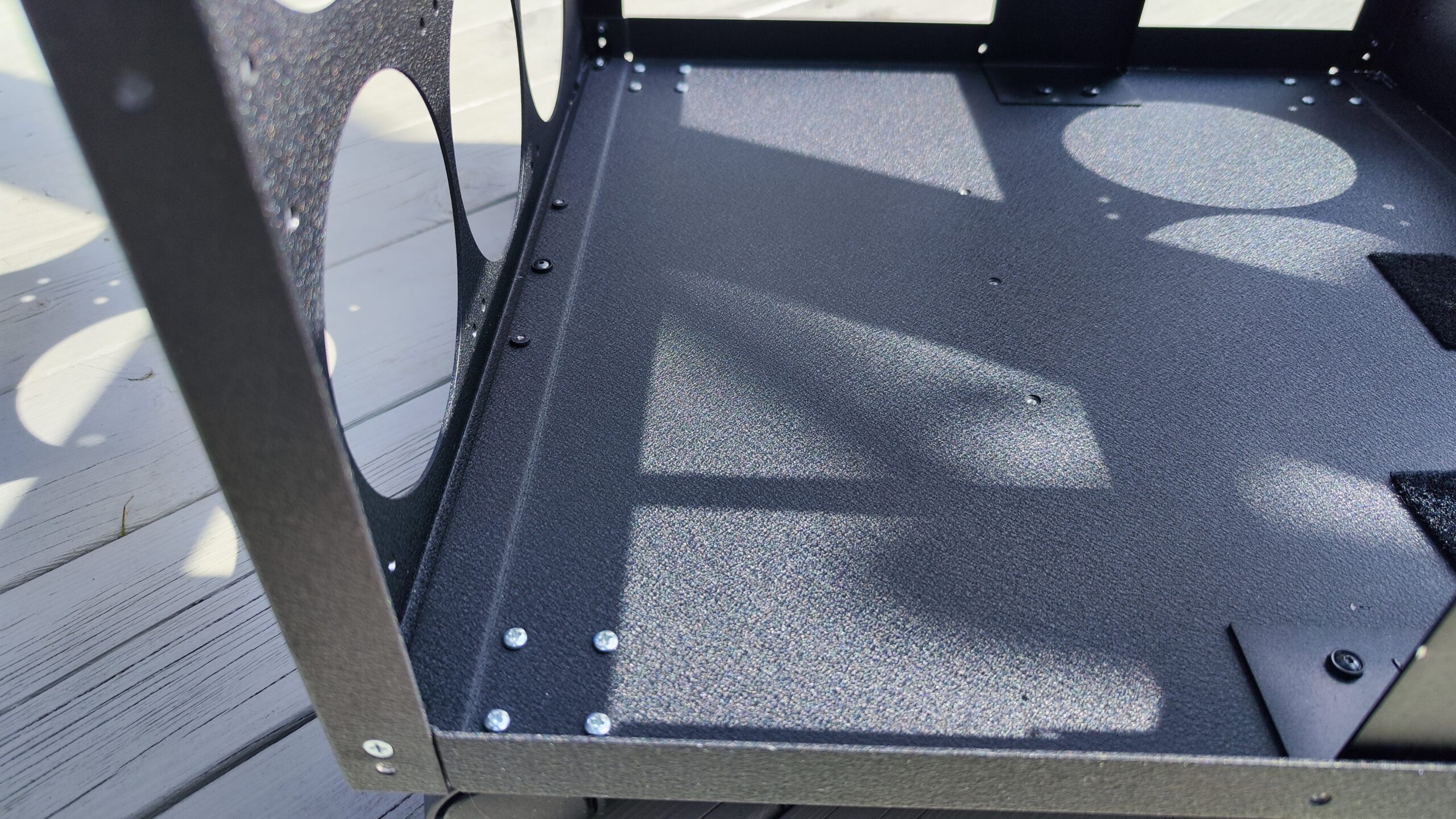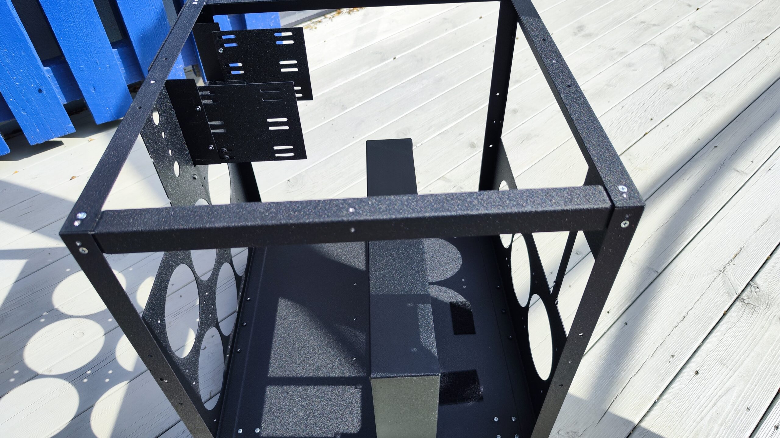 PSU: Jag skulle rekommendera en större PSU-modell för att den ska nå till den stödram som finns i mitten. Den senaste PSU jag använde var en mindre modell – det fungerade absolut, och chassit är superstabilt och klarar lätt att bära upp vikten även om den bara “hänger”. Men det blir helt enkelt snyggare och bättre med en längre PSU.