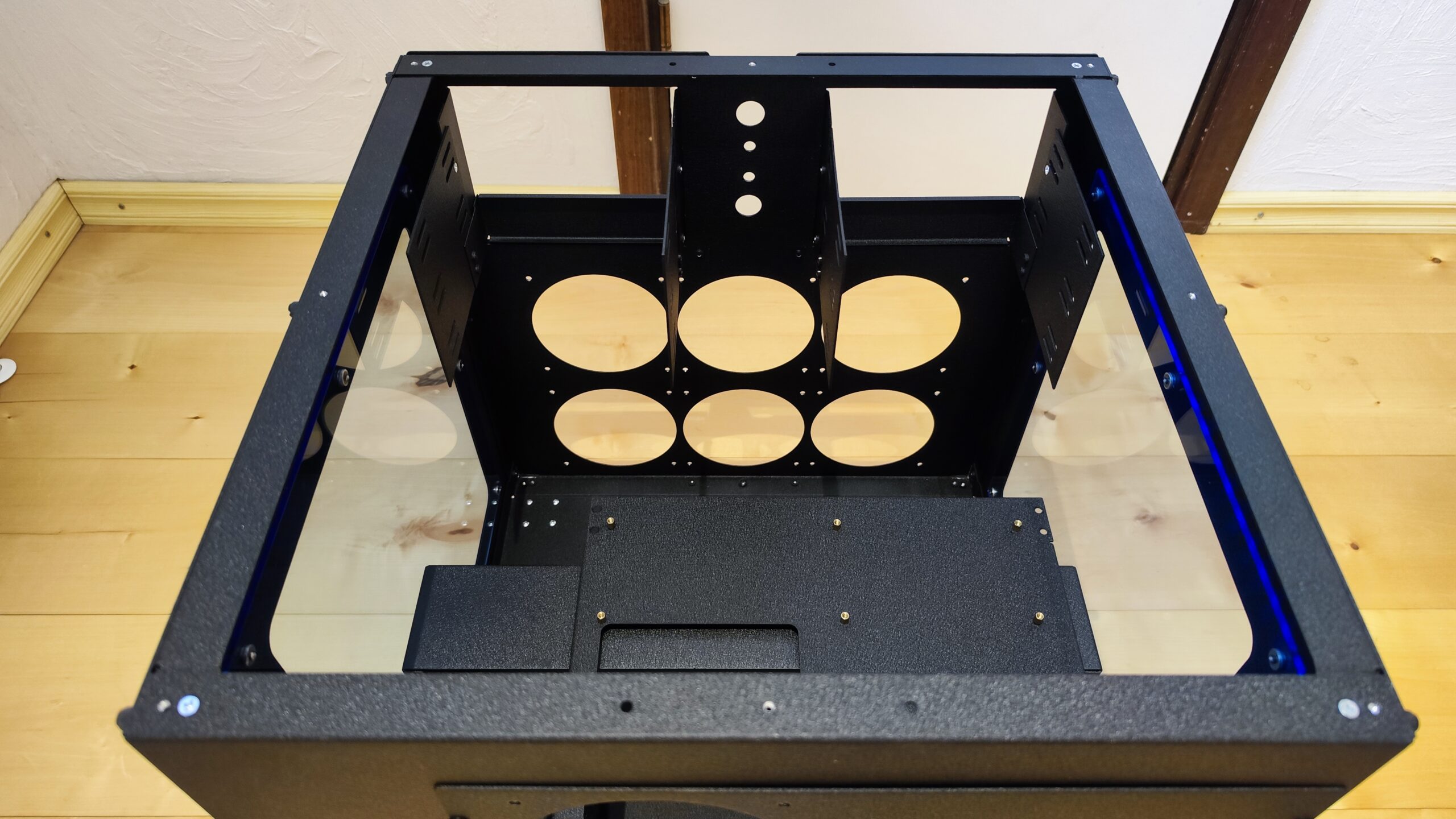 För övrigt är det ett premiumchassi i tjock aluminium – stabilt och robust, men ändå ultralätt. Det är väldigt smidigt att bygga i, då alla sidor går att ta av, och placeringen av moderkortet och övriga komponenter gör allt lättillgängligt.
