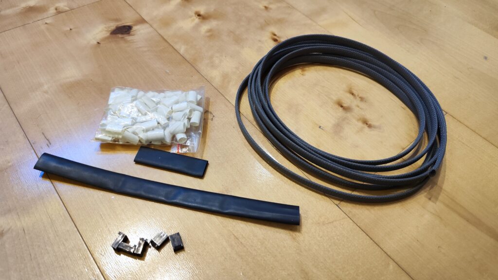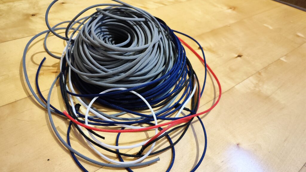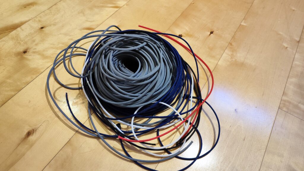 Sleeve Några stumpbitar i olika färger, samt en grå sleeve i stora mängder – många meter.