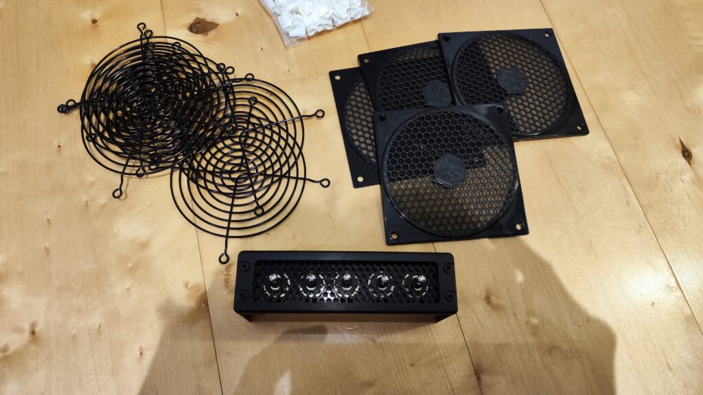 En av radiatorerna har böjda galler – de var så redan när jag fick den från fabriken. Den har alltså inte tappats i golvet eller liknande. Skadan syns inte när fläktarna är monterade.